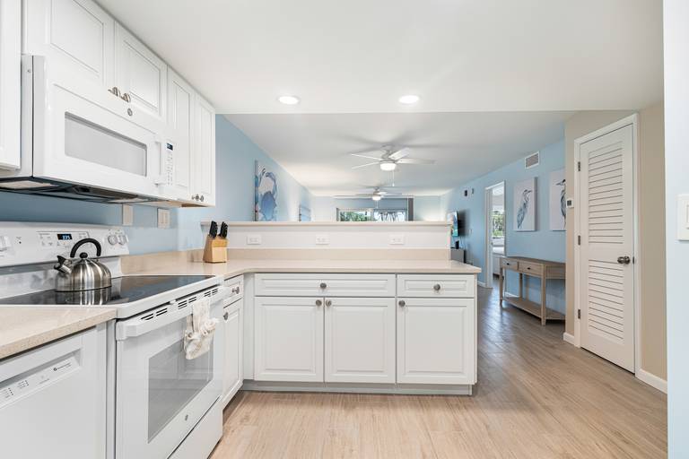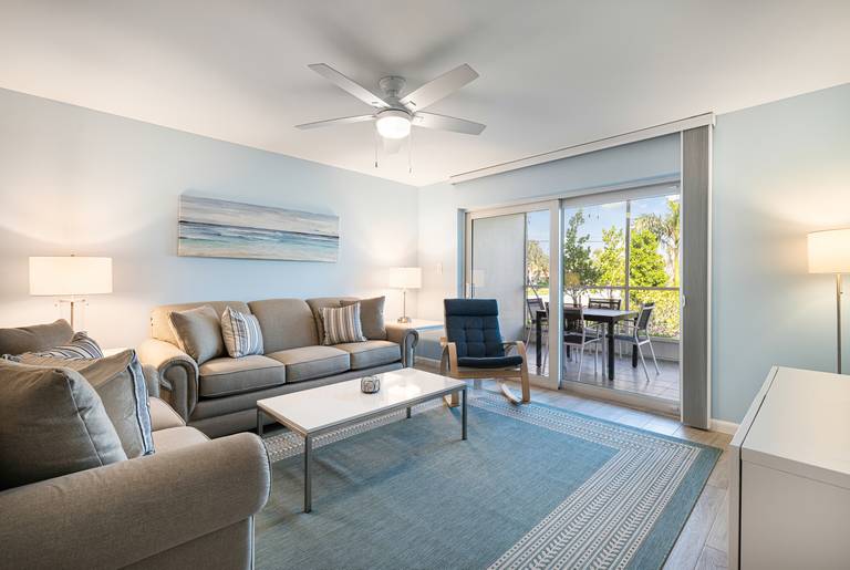 Brand new & completely remodeled since Ian. Breakers West A2 is a beautifully appointed ground level island rental in the small 18 unit Gulf-side community of Breakers West. You'll find your personal oasis in this condo that offers soft hues of blues and greys along with coastal inspired decor.