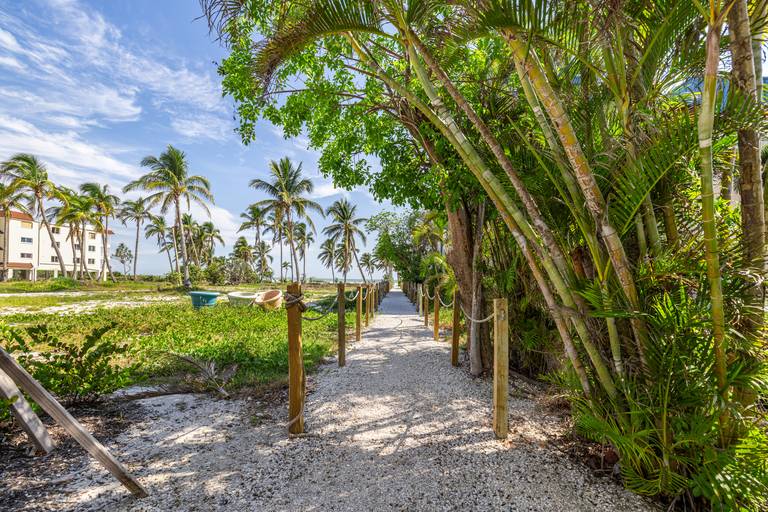 Take in the warm Gulf breezes from your private screened-in lanai while sipping your morning coffee or enjoying that evening cocktail while looking out over the tropical greenery. Enjoy floating in the heated community pool that is just steps away. The owner has equipped the unit with 3 flat screen TVs, secure Wi-Fi and beach equipment.