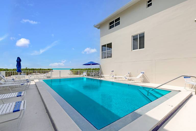 By mid afternoon, the pool is mostly shaded so we could hop in without glopping on a bunch sunblock. The condo is located on a calm, quiet, beautiful residential street. Both grocery stores are just down the road. The beach was lovely, with lots of smaller shells and various wildlife. We had everything we needed and never wanted to leave.