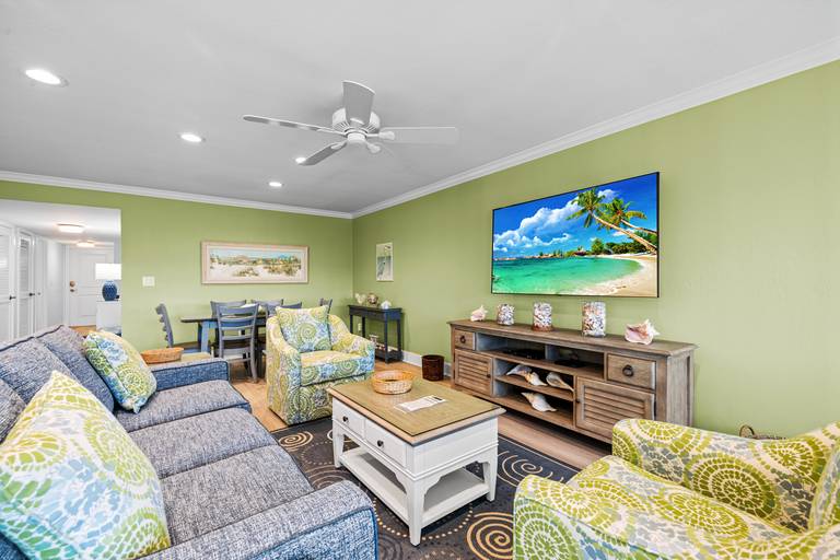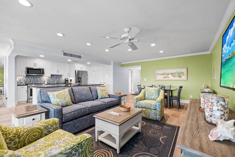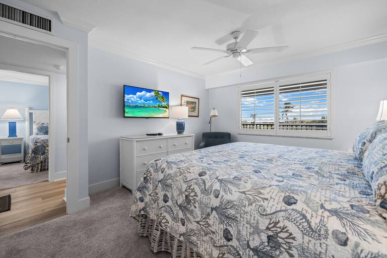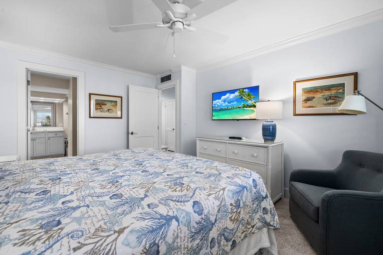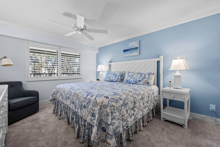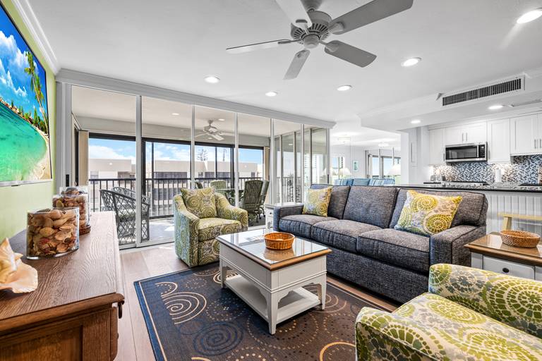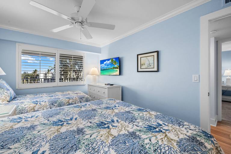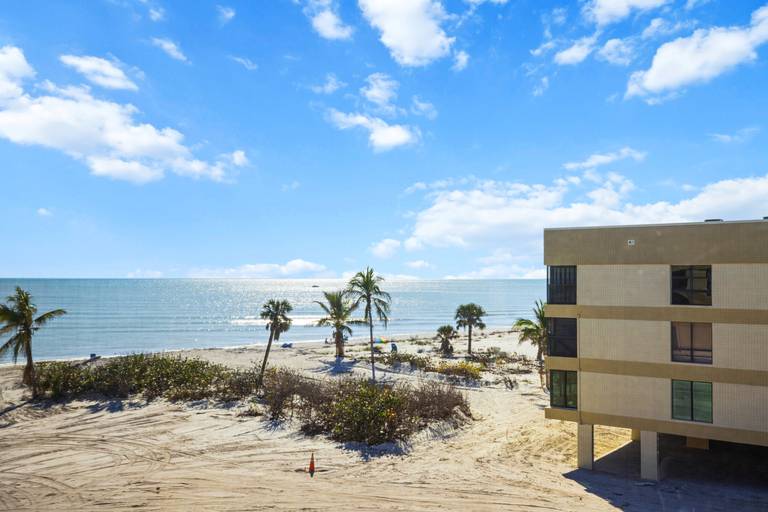 Kings Crown #306 is a top floor unit with beautiful Gulf views. This freshly painted unit with new furnishing throughout (February 2020) is perfect for your Sanibel vacation! There is a king bed in the primary, a queen and a twin in the guest bedroom. Beach equipment provided.