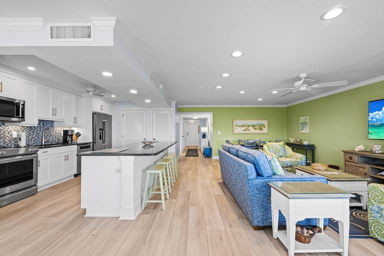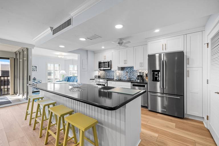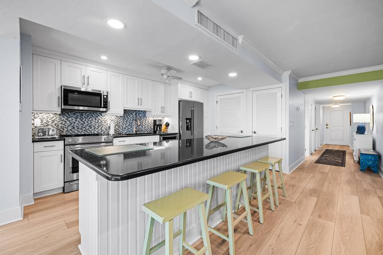Gorgeous condo with beautiful decor and fabulous gulf view. Spacious unit for 6 adults. Fully supplied kitchen, beach chairs etc. Easy checkin and out. Door key code entry is great.