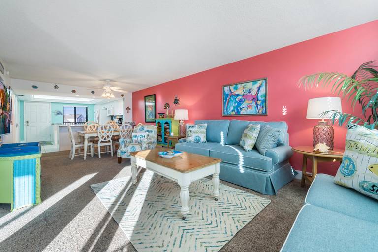 Welcome to Loggerhead Cay 313! Walking through the door you'll think you are in Cabo San Lucas with the cheerful decor! A third floor 2 bedroom, 2 bathroom unit located in one of Sanibel’s largest condo communities, with 168 total units. With bright and tropical decor, your family will be ready for a week of Island time!
