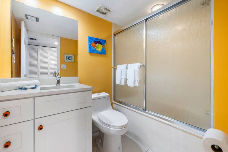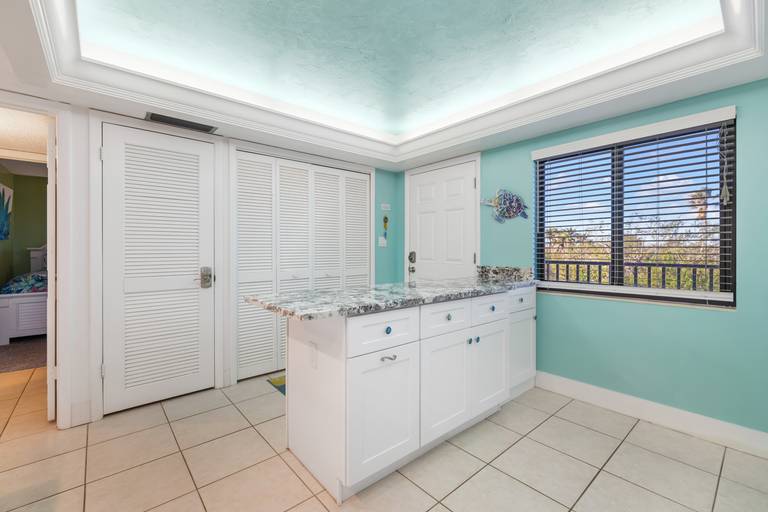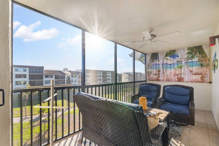 The updated kitchen is perfect for preparing a quick breakfast at the kitchen island or a gourmet meal served at the dining table. After, you can head out to the screened-in lanai to relax and enjoy a cocktail, the courtyard views and the warm Gulf breezes. At the end of a long day of sunning and shell hunting, cool down in the the living room watching your large streaming TV or make some treasured family memories playing one of the many board games provided. The living room provides a brand new pull out sofa for an extra guests. The condo is outfitted with high speed internet and Wi-Fi. At the end of the day you can retire to your comfy king bed in the Primary bedroom with on-suite and streaming TV. The guest bedroom has 1 queen bed and 1 twin bed, TV (streaming) and a private bath. **Be sure to bring all your streaming account passwords to watch your favorite programs!**