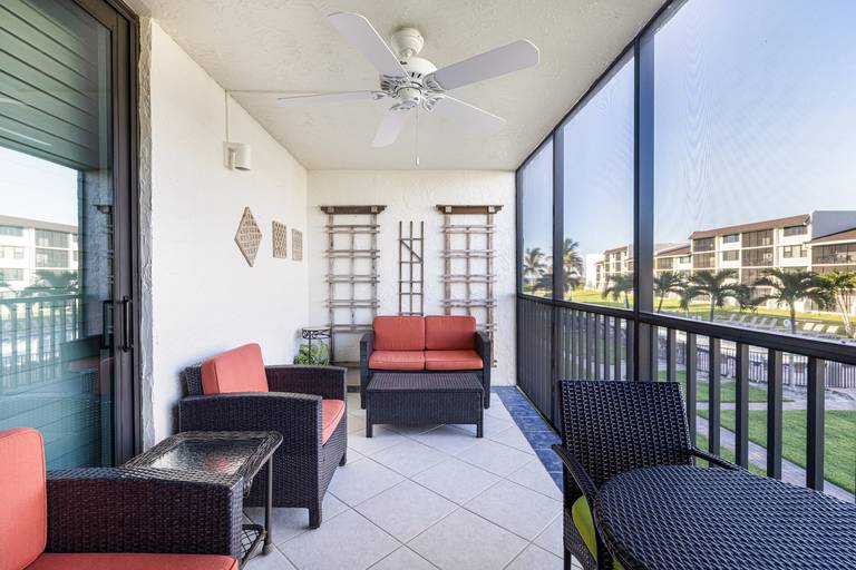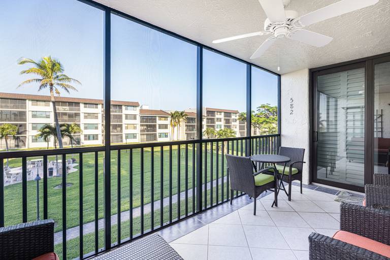 Welcome to Loggerhead Cay 582, a 2 bedroom, 2 bathroom condo with partial angled views of the sparkling Gulf of Mexico from the lanai. This bright, beautiful unit is freshly painted, with all new wood plank luxury vinyl flooring. The updated kitchen has everything you'll need to prepare you favorite meals. The owner has installed brand new appliances and reverse osmosis water filtration system - no need to buy bottled water! You'll delight in the colorful & comfortable living room with plenty of seating and large flat screen TV. The Bahamian style primary suite has a comfortable king bed and flat screen TV, and updated en-suite bathroom. Your guests will feel right at home in their space with a queen and twin bed, TV, and is with-in steps to the second bathroom with a walk-in shower. The AC unit has an ultraviolet light which sanitizes the air as it recirculates through the condo. You'll enjoy relaxing on the comfortably furnished lanai while enjoying the Gulf breezes.