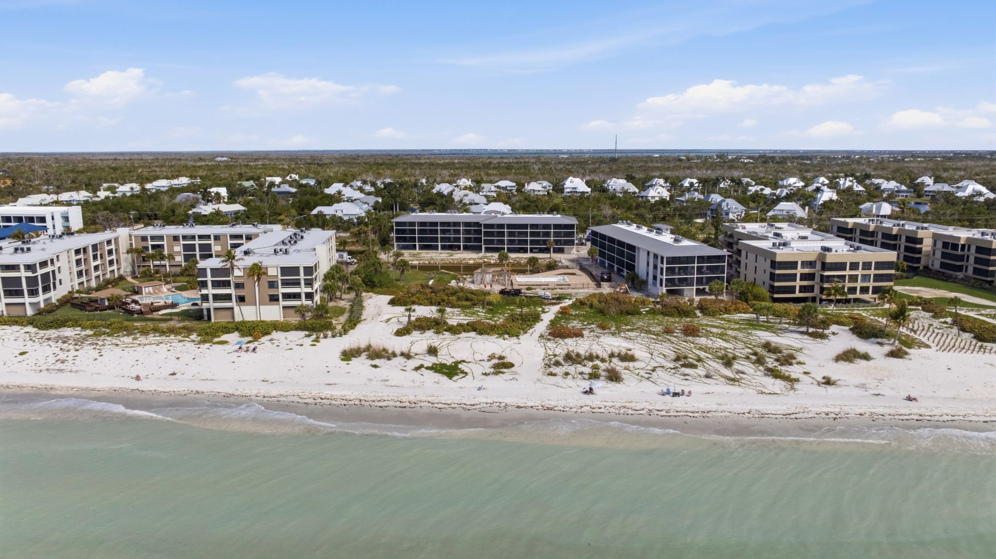 AERIAL VIEW [34]On the West End of Sanibel, you will find the well-kept secret of Sand Pointe with only 45 units and quiet beaches. ***PLEASE NOTE: POOL IS CURRENTLY NOT OPERATIONAL and has an estimated completion date in AUGUST 2026. Exterior landscaping projects are on going. These timelines are projections and are not guaranteed.****Sand Pointe 112 requires a 7 night minimum stay but does not require a Saturday arrival or departure.***