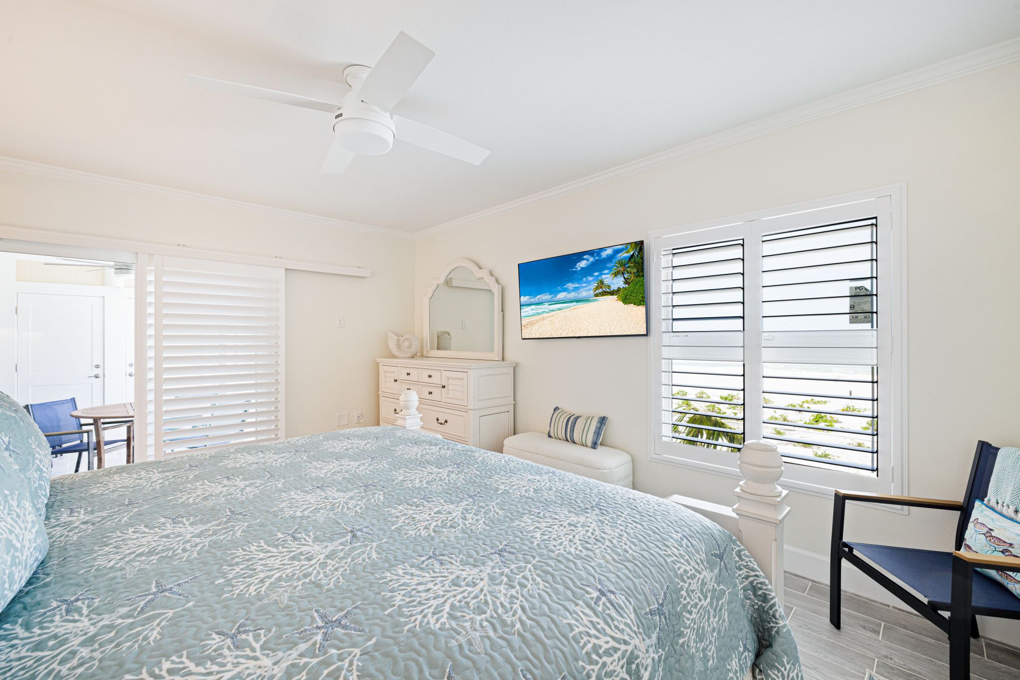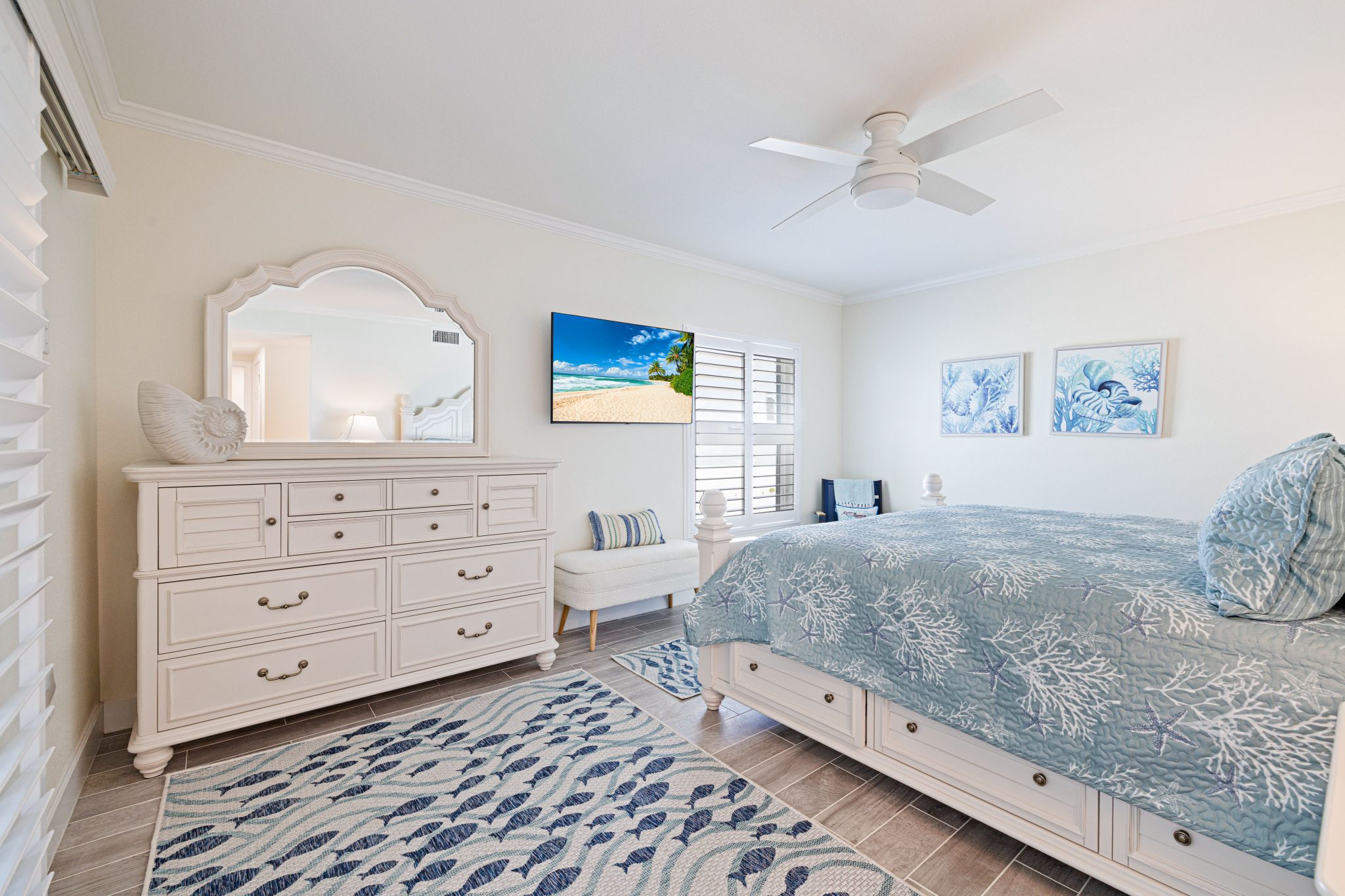 A luxurious primary suite serves as your private sanctuary, featuring a king-sized bed, smart TV, and those amazing Gulf-front views! Your private lanai is also accessible from this bedroom. The ensuite bathroom boasts a large walk-in shower and dual sink vanity with an abundance of counterspace and cabinetry for your things.