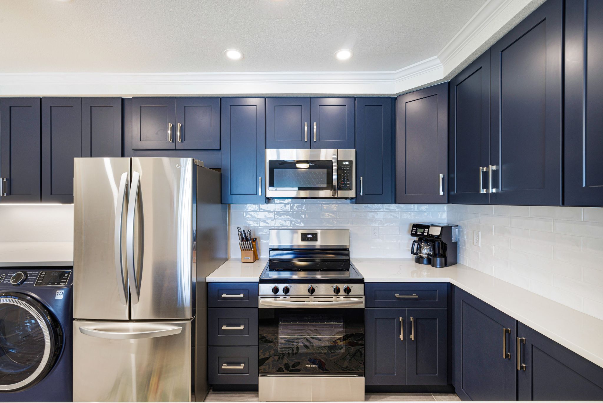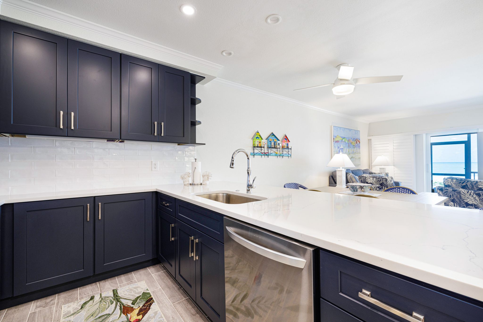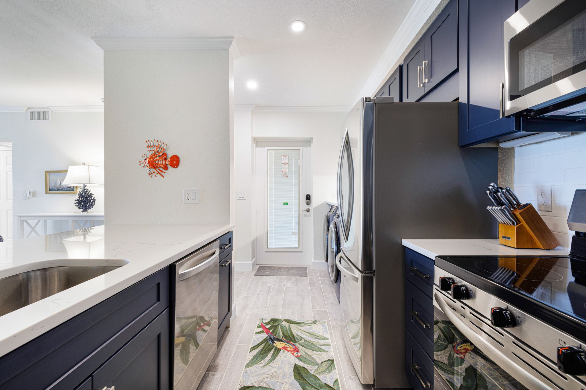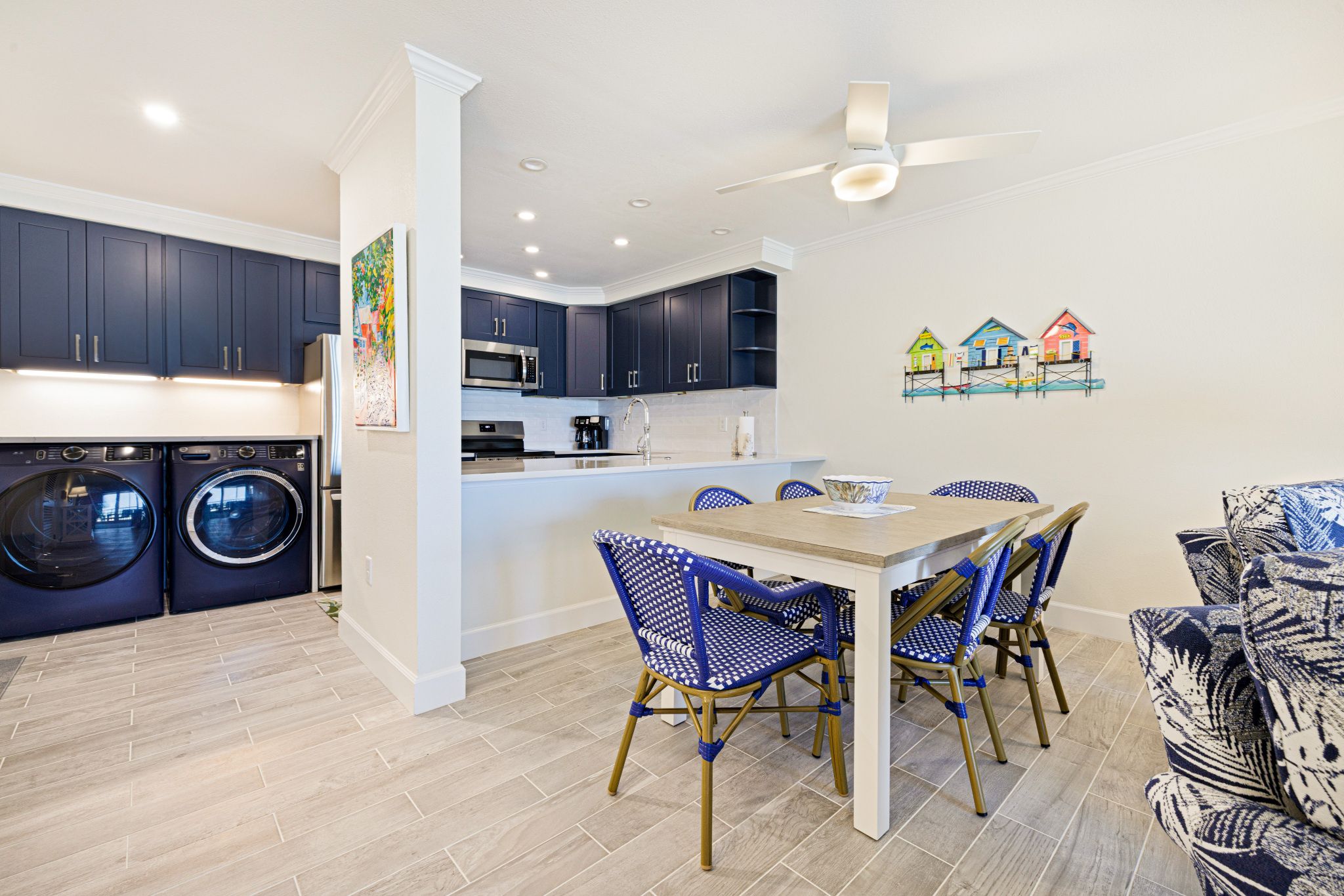 New from the bottom to the top, this ground-level, beautifully appointed, 2 bedroom, 2 bath unit is furnished in chic coastal style. The open concept living space features views of the Gulf of Mexico and is perfect for entertaining or relaxing. Watch the big game or stream your favorite shows on the large smart TV , which, like the 2 TVs in the bedrooms, has 157 LG channels (be sure to bring your login credentials for other options) or host a game night on the spacious dining room table. Prepare gourmet meals in the fully equipped kitchen with stainless steel appliances, quartz counters and gorgeous custom navy cabinets.