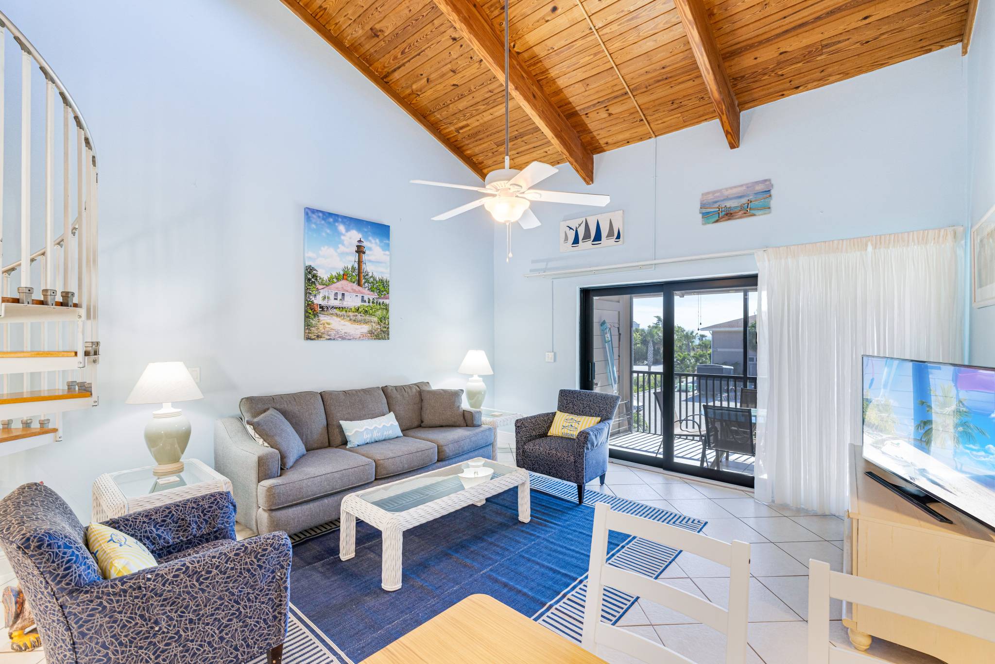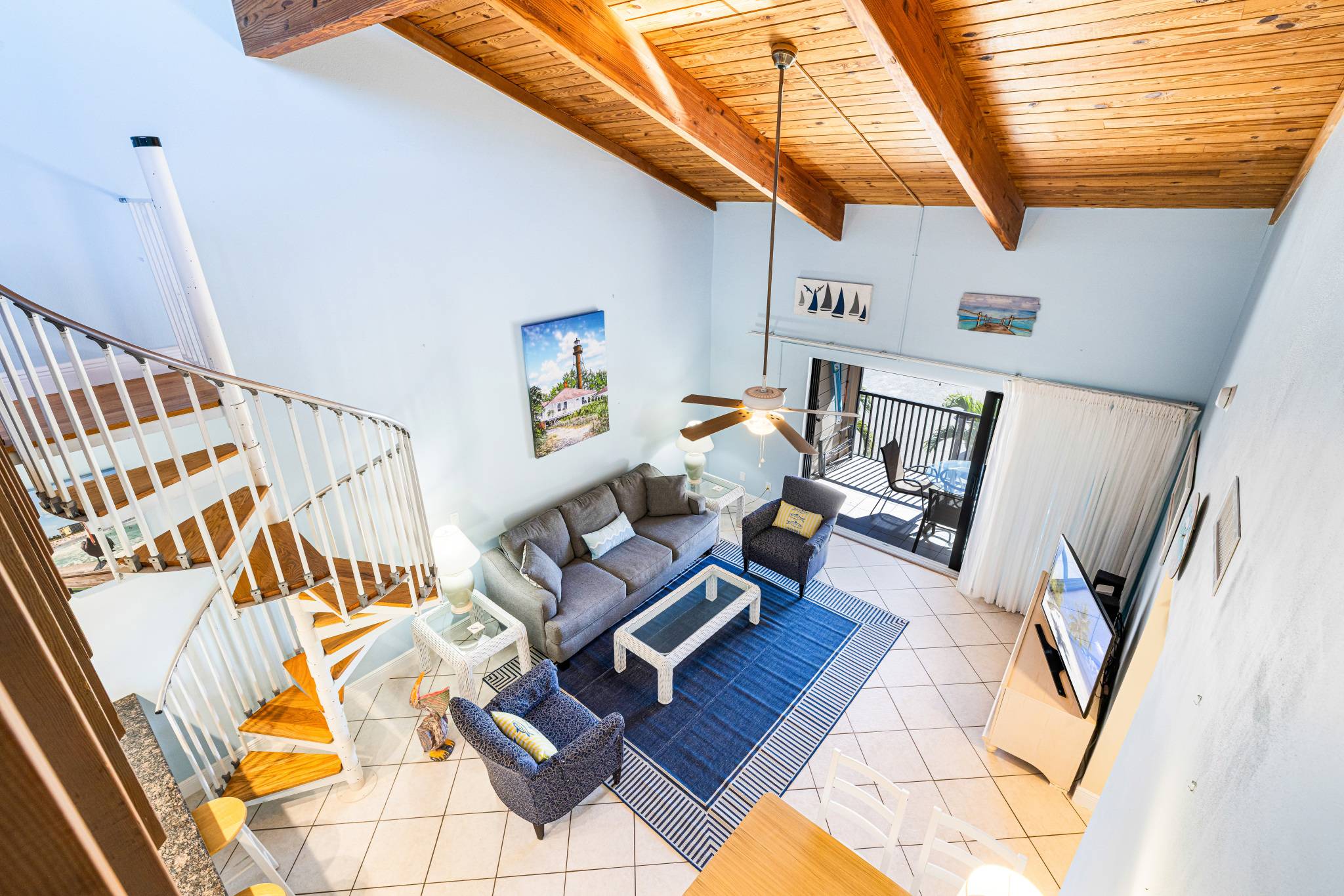 Coquina Beach is a small, family-friendly complex with only 40 units located on Middle Gulf Drive. 5E is a 2 bedroom, 2 bathroom second floor walk-up (sorry, no elevator) that features a sleeping loft unit that can comfortably accommodate up to 6 guests.