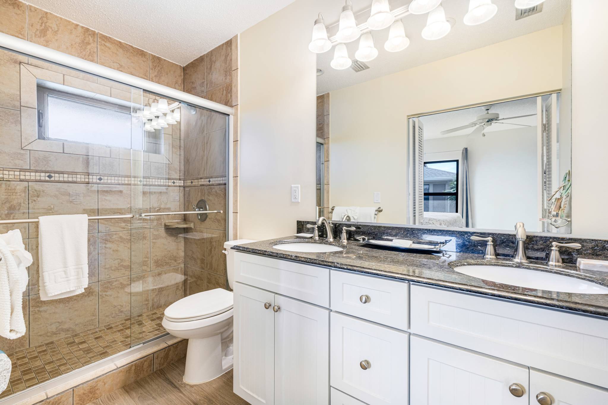 You and your guests will enjoy this beautiful unit with an updated kitchen featuring granite countertops, stainless steel appliances, and is fully stocked with everything you need for a basic meal or gourmet feast!