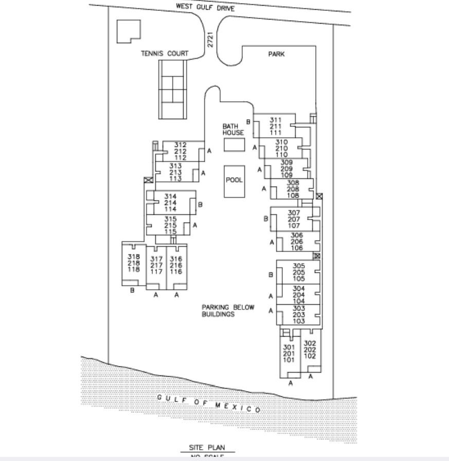 Welcome to Kings Crown 109! Located on the desirable West Gulf Drive, Kings Crown is a 54-unit complex with a community heated pool (NOW OPEN!), tennis courts (no projected completion date) and elevators with under building parking and private storage lockers.