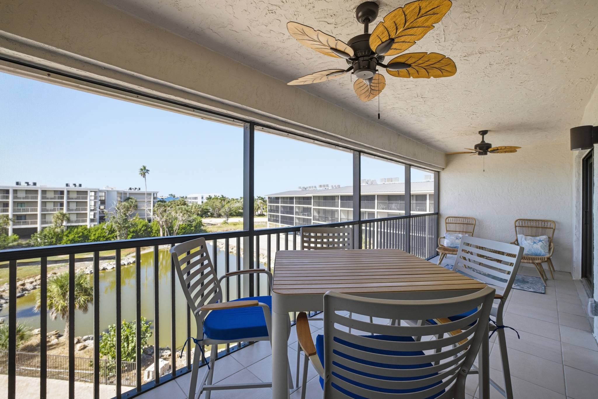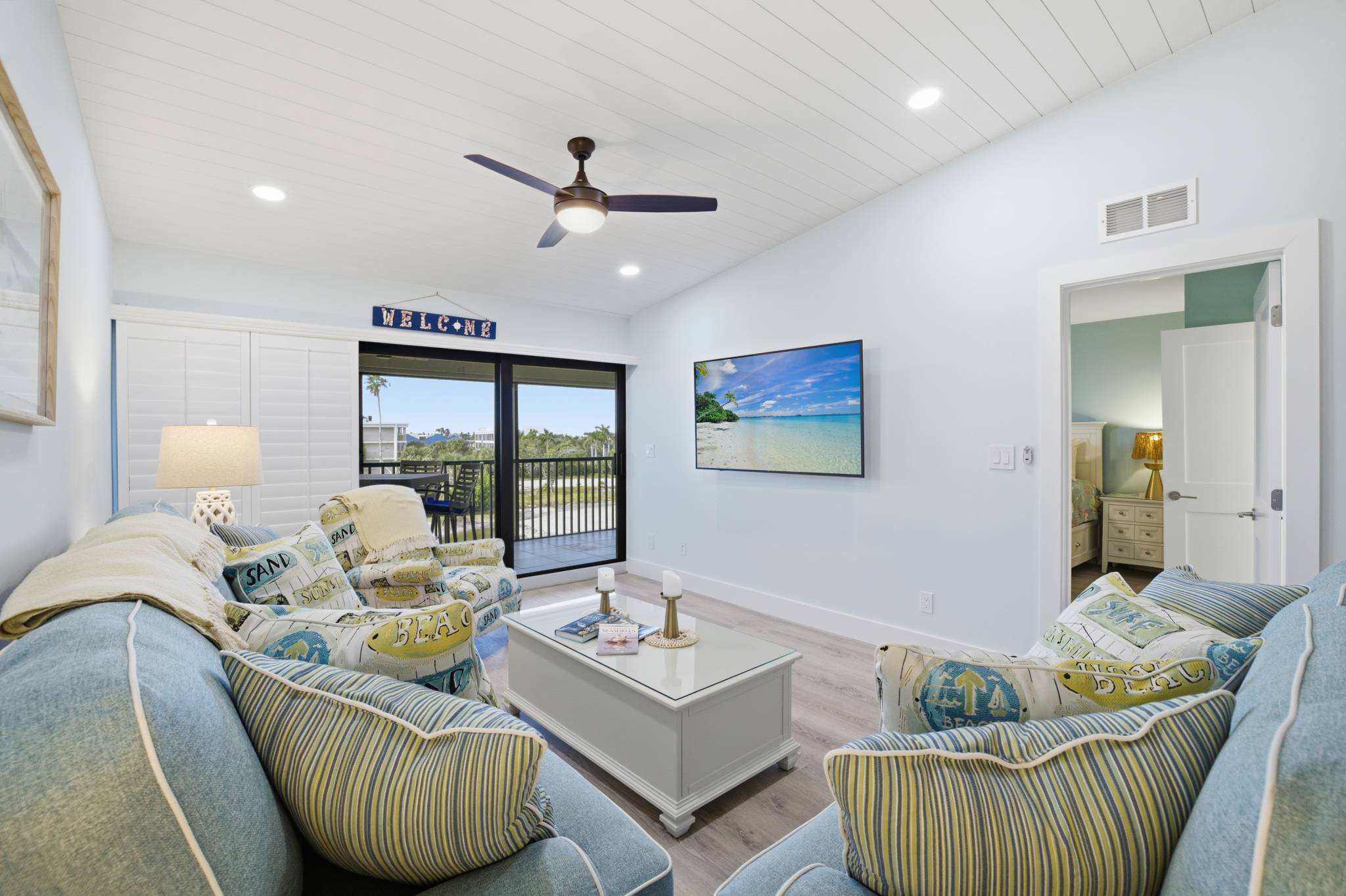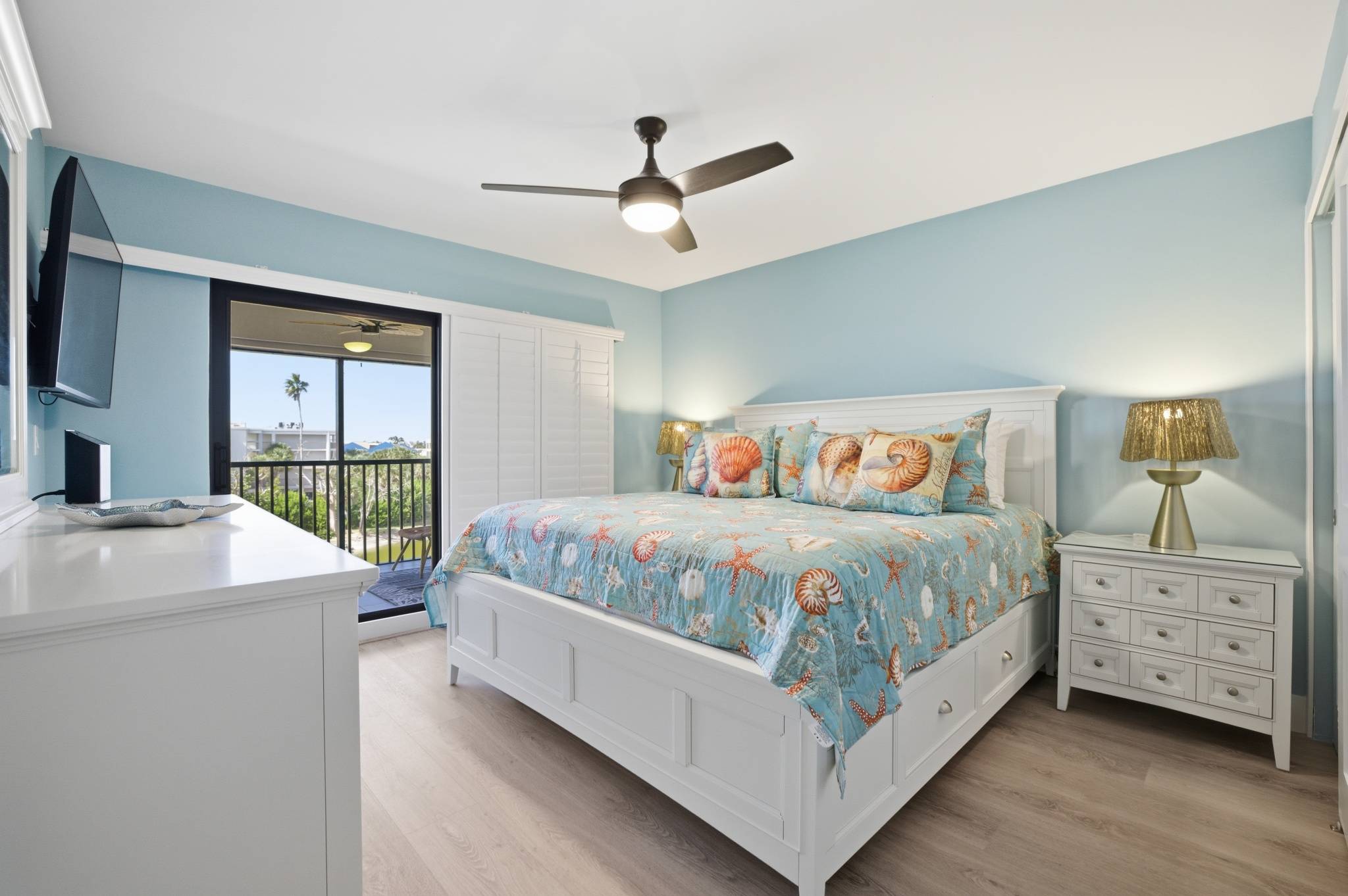 We had an amazing week staying in this condo. We have stayed all over the island, and this unit was definitely our favorite! The unit is so clean and comfortable. The master bedroom looks out onto the deck/water. The guest bedroom is set away from the master towards the front of the unit. The kitchen has all the gadgets you could need, and the living room and each bedroom has a tv. The grounds and pool are well maintained, and it is a quick walk down the boardwalk to the beach. The location of the condo itself is also great because it is on the top floor- so there is no overhead noise. Its also an easy bike ride down Tarpon Bay Rd to get to shops and restaurants. Overall we had a fantastic stay and look forward to staying again!
