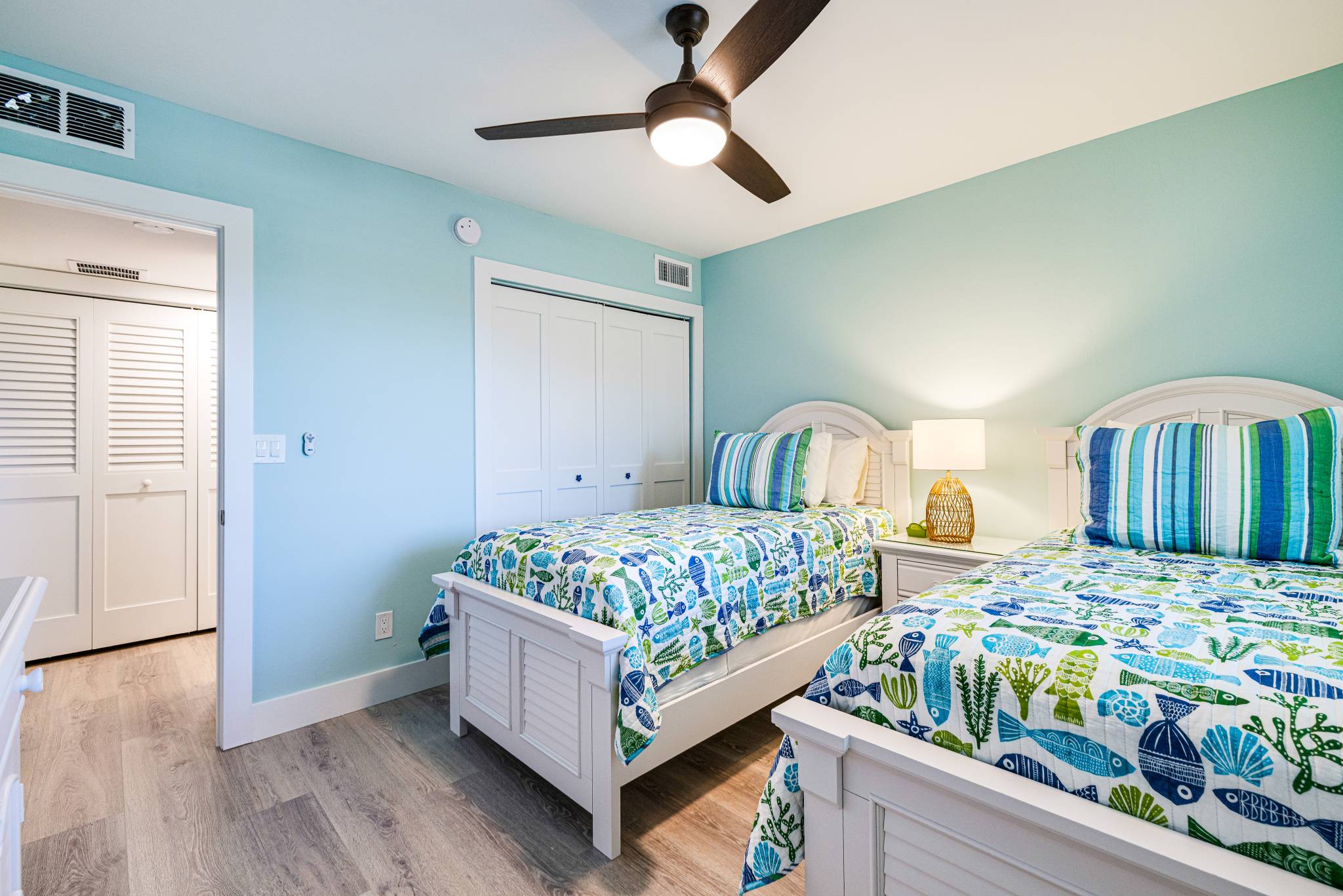 Unit #132 is a completely new condo on the top-floor unit with 2 bedrooms, 2 bathrooms that comfortably accommodates up to 6 guests with a king bed in the master, twin beds in the guest and a sleeper sofa in the living room.